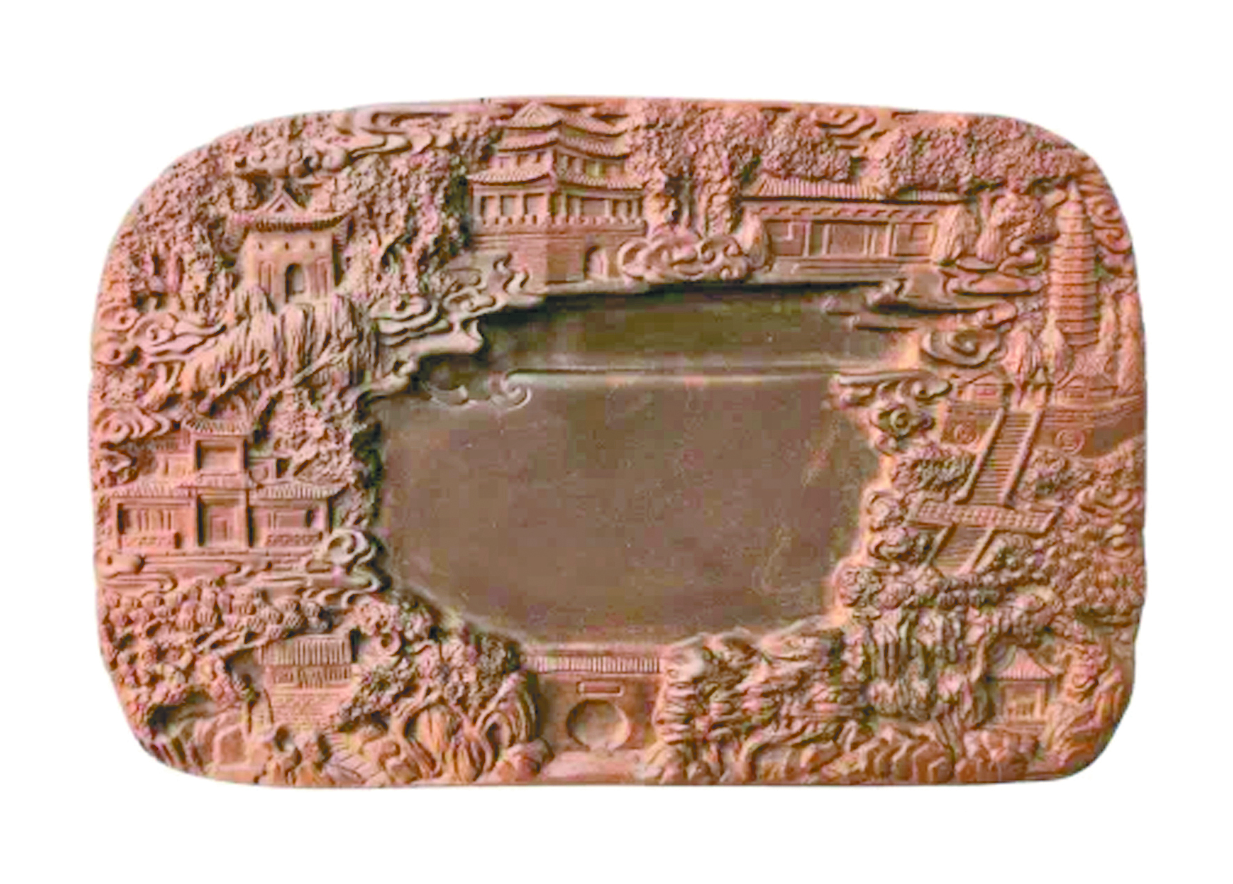绛州名城砚,色泽庄重、高贵、典雅、大气,实乃砚中之珍品。此砚是蔺涛大师根据国家历史文化名城一千四百多年的古城建筑特色、丰厚历史文化内涵,用几十年潜心研究、传承千年的技艺,集大师心智、灵感、创新于一体,专为名城新绛精心设计、制作、雕刻、烧制,代表新绛璀璨的历史文化、古城特色之精品力作,是古州新绛名城文化之缩影、是名城最靓丽的优秀传统文化名片和文化符号。