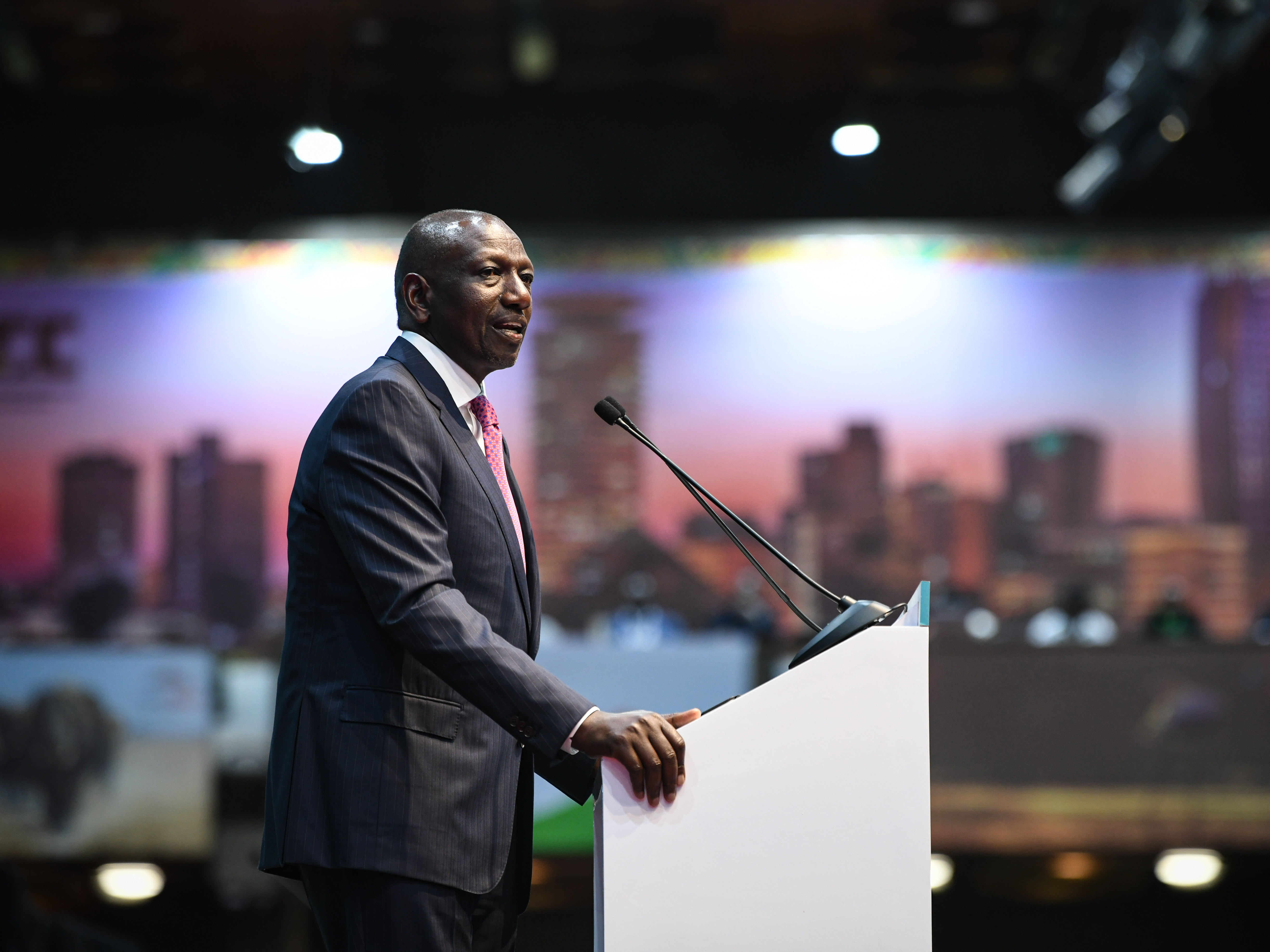 ▲9月4日,肯尼亚总统鲁托在内罗毕举行的首届非洲气候峰会开幕式上致辞。首届非洲气候峰会4日在内罗毕召开。与会代表呼吁国际社会加大对非洲的资金和技术支持,帮助非洲国家应对气候变化挑战,实现绿色发展。
