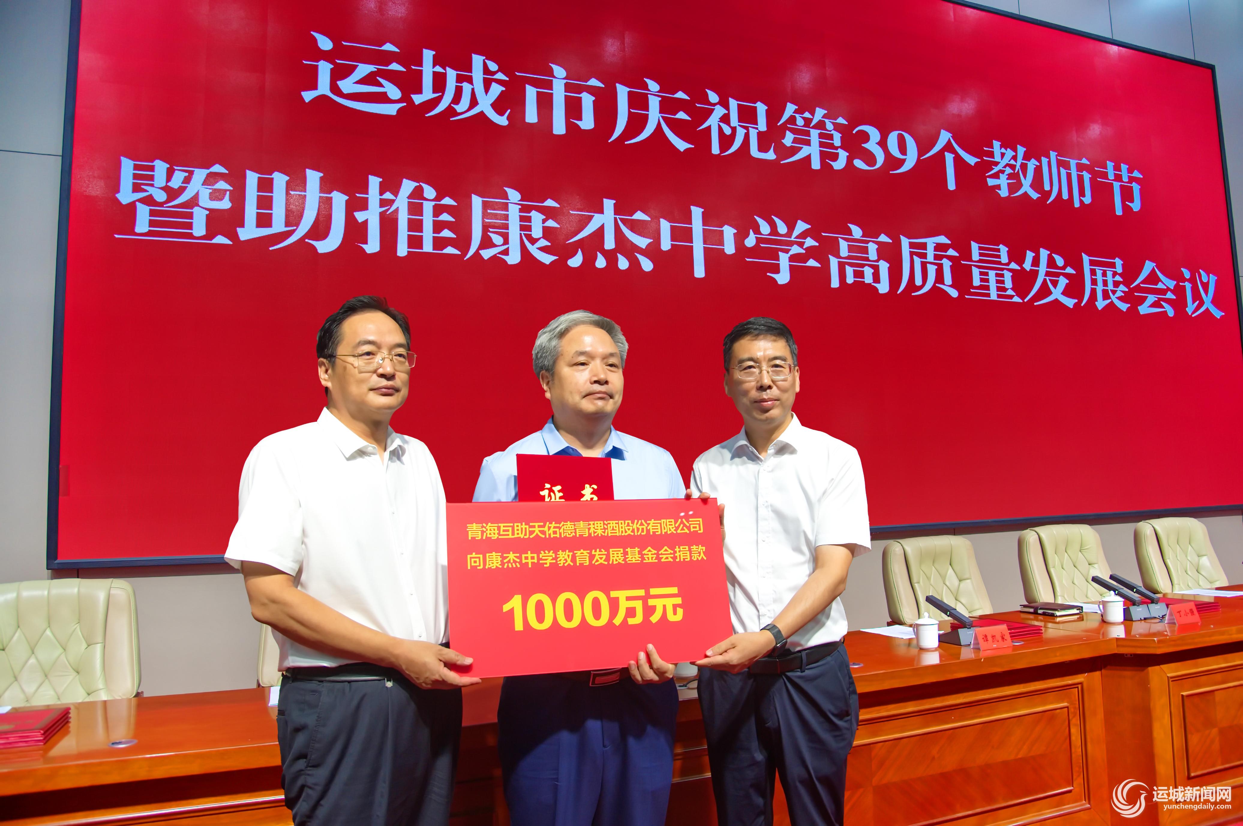 运城晚报讯(记者 杜磊)9月7日上午,康杰中学康杰大讲堂内掌声经久不息,在我市庆祝第39个教师节暨助推康杰中学高质量发展会议上,我市11家爱心企业和3名康杰中学校友慷慨解囊,共捐资3400万元,助推康杰中学高质量发展。