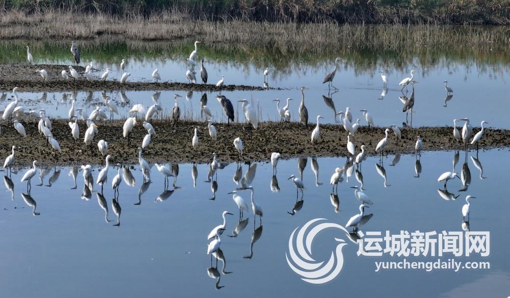 9月9日,永济伍姓湖湿地湖光千顷、碧波荡漾,风景如画。一对对野鸭时起时落,一群群白鹭自由觅食,构成一幅人与自然和谐共生的生态画卷。 特约摄影 陈春明