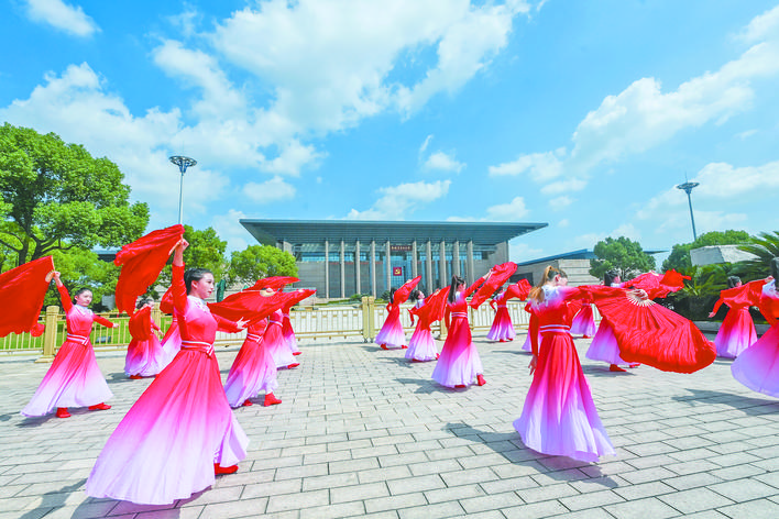 9月10日,浙江嘉兴南湖革命纪念馆前举行文艺表演。