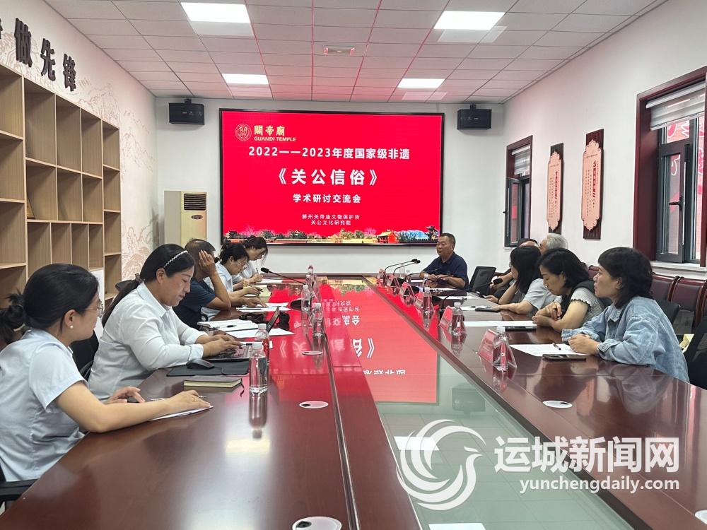 为进一步弘扬关公文化,助力第34届关公文化旅游节,9月11日,解州关帝庙文物保护所(关公文化研究院)在解州关帝祖庙召开了“2022-2023年度国家级非遗《关公信俗》学术研讨交流会”。