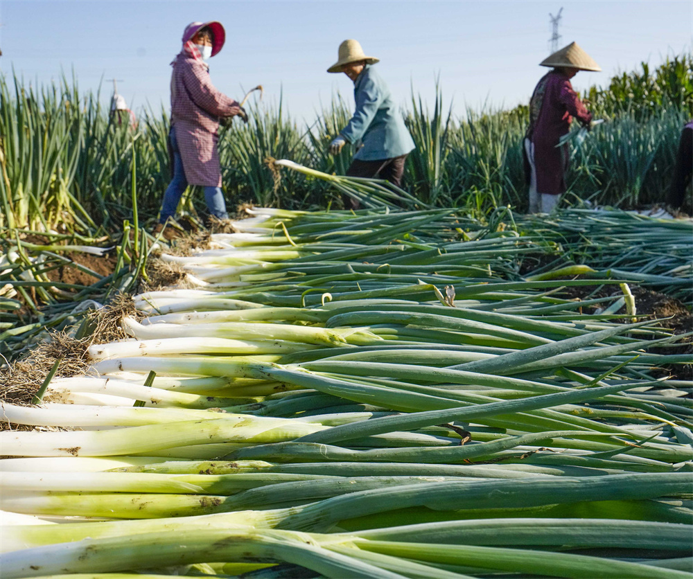 目前,河北省玉田县的5万亩大葱陆续成熟,当地农民抢抓农时进行收获,精选、打捆供应市场。