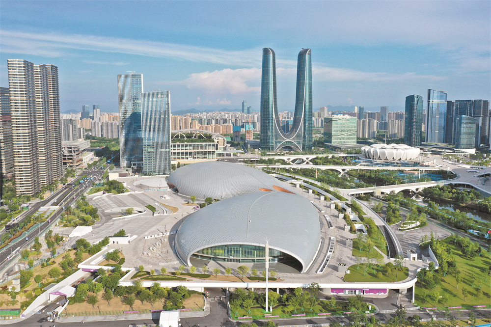 这是无人机拍摄的杭州奥体中心游泳馆、体育馆。