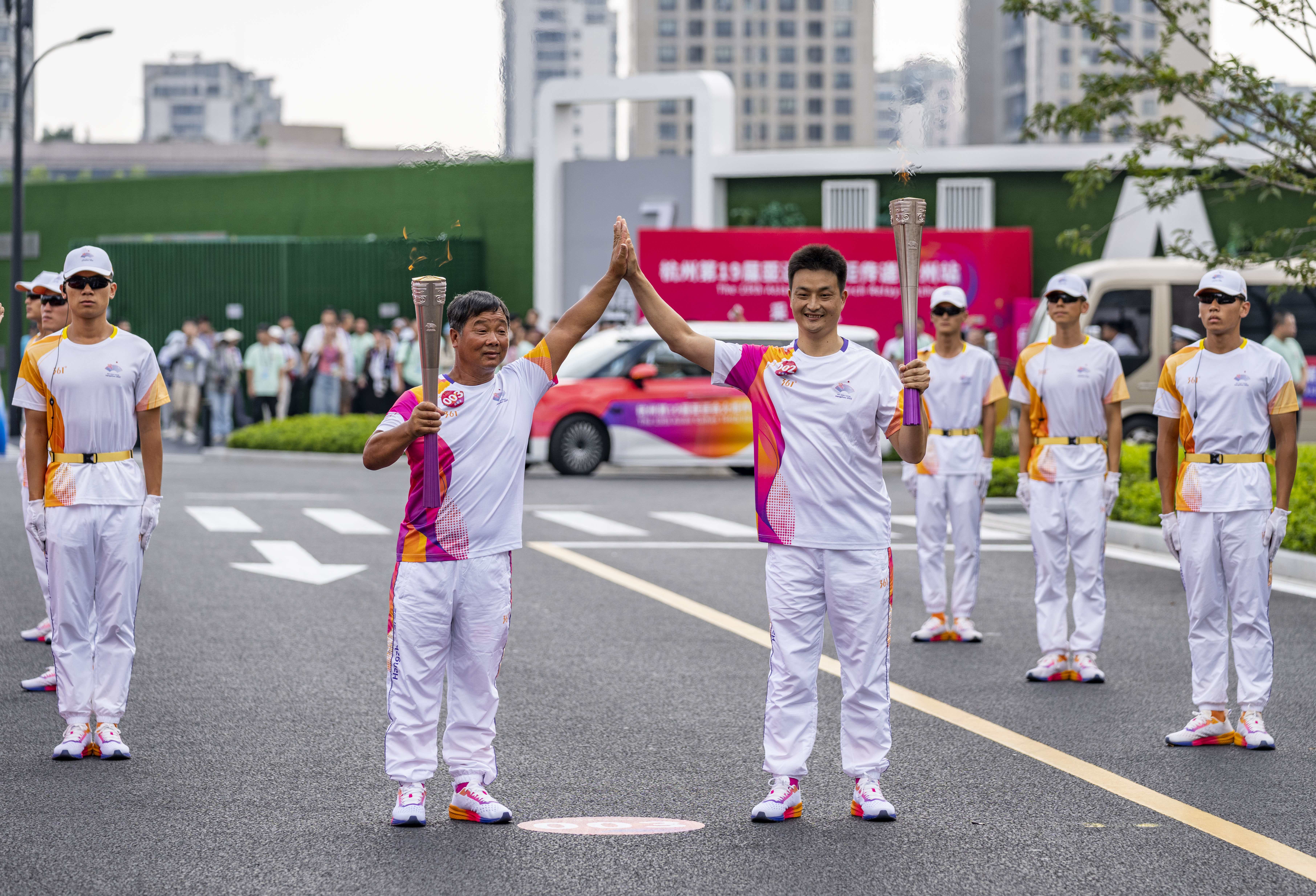 当日,杭州亚运会火炬在浙江省台州传递。