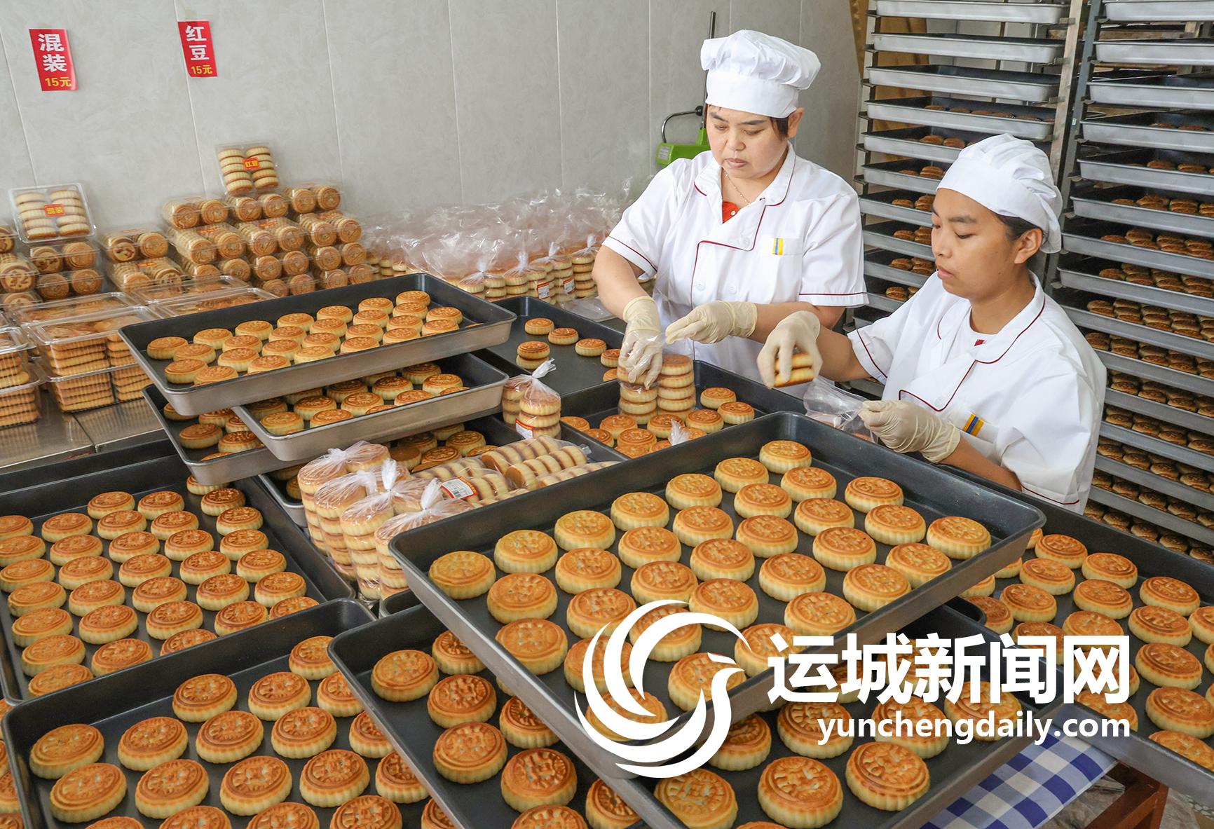 9月13日,万荣县里望乡一月饼厂的员工在包装月饼。