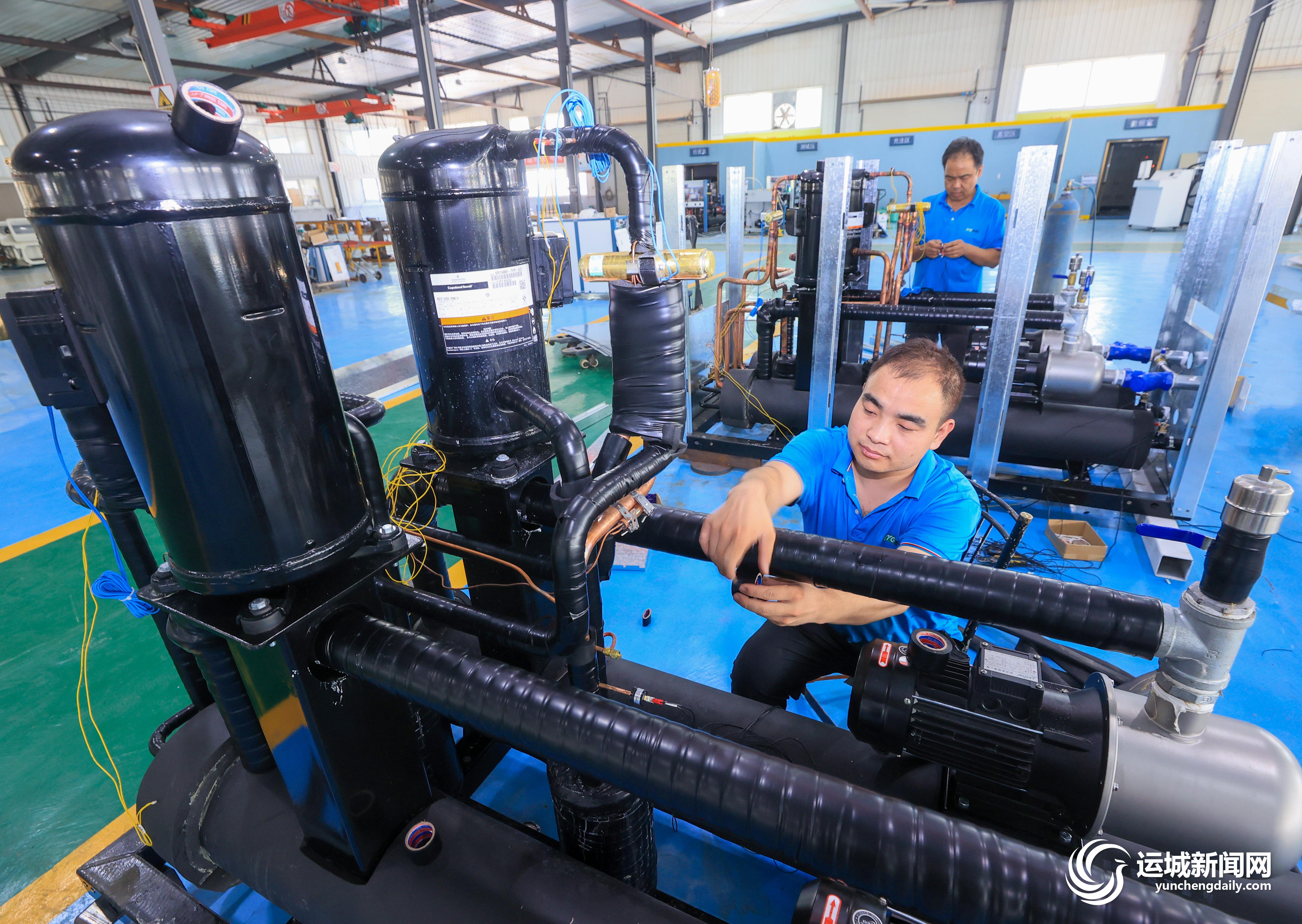 9月14日,位于盐湖高新区的山西新源谷能源科技有限公司生产车间内,工人在生产地源热泵产品。