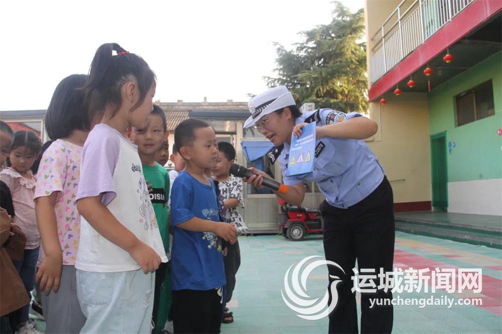 运城晚报讯(记者 刘凯华)9月13日,永济交警大队蒲州中队民辅警走进辖区西文学小学和西文学幼儿园,开展“知危险会避险”交安小课堂活动。