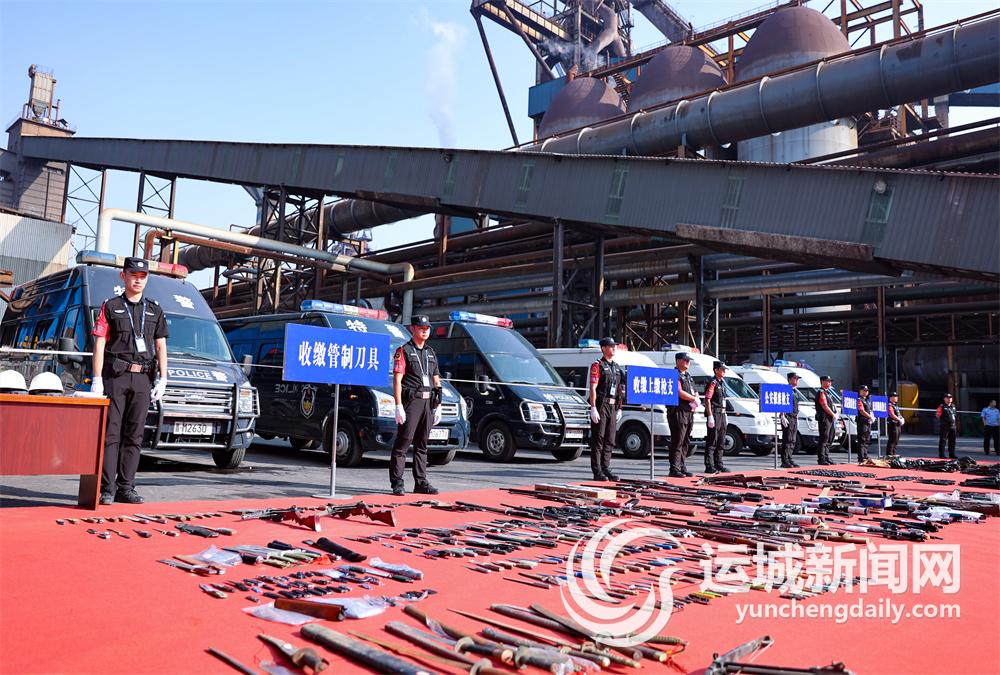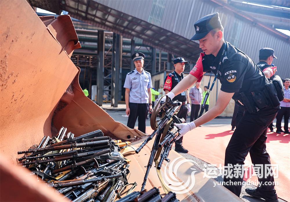 9月15日,市公安局在闻喜县山西建龙实业有限公司厂区,开展以“除枪爆 护稳定 保民安”为主题的集中销毁非法枪爆物品活动,集中销毁收缴的90支非法枪支和264把管制刀具及报废公务用枪支。