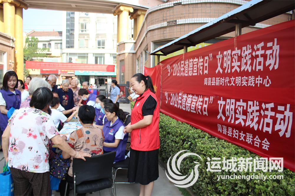 9月17日,闻喜县妇女联合会在该县西湖小区开展“9·20公民道德宣传日”文明实践活动。