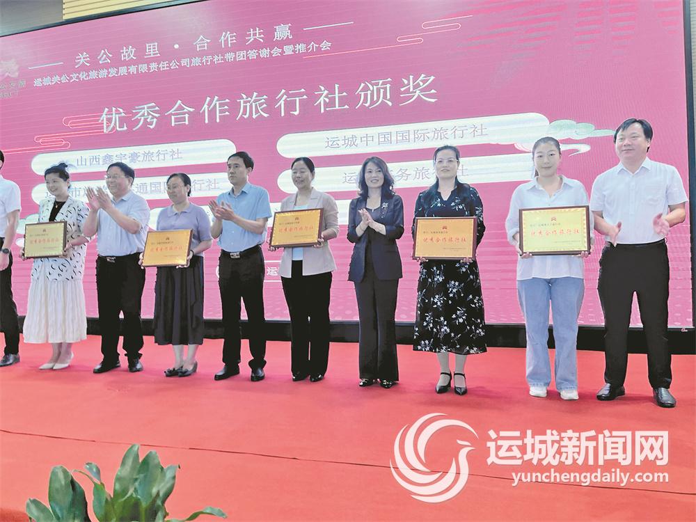 此次答谢推介会旨在与各旅行社和重要客户加强联系、促进合作,畅通交流渠道,为全面实现关公文旅各景区客流稳步提升搭建合作平台。会上,关公文旅对近年来作出优秀贡献的运城观天下旅行社、运城商务旅行社、运城旅游百事通国际旅行社等进行了表彰奖励。