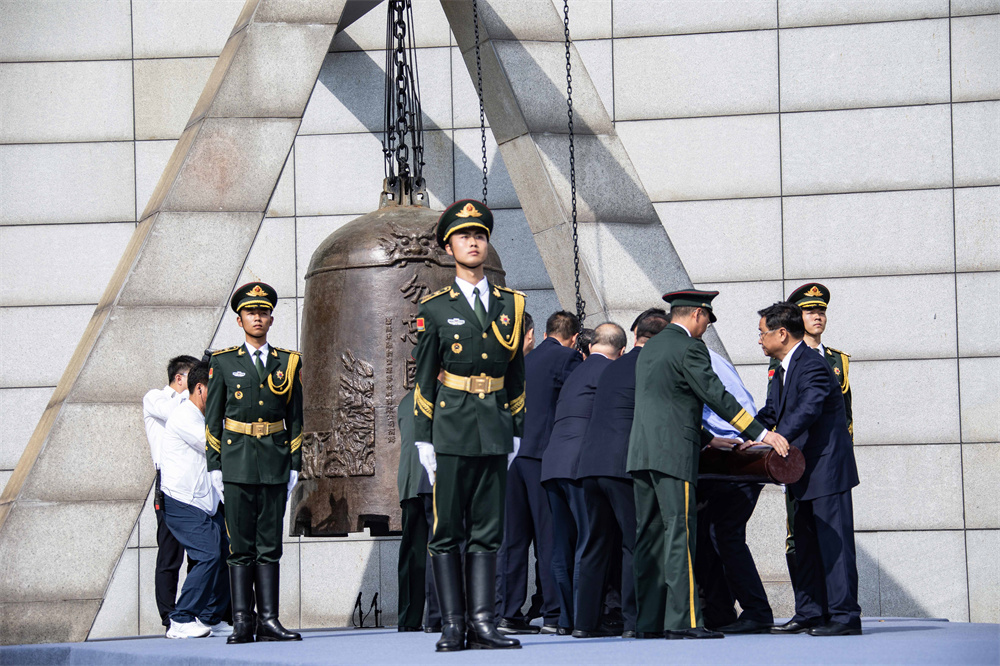 9月18日,参加仪式的各界代表共同撞响“勿忘国耻”警世钟。