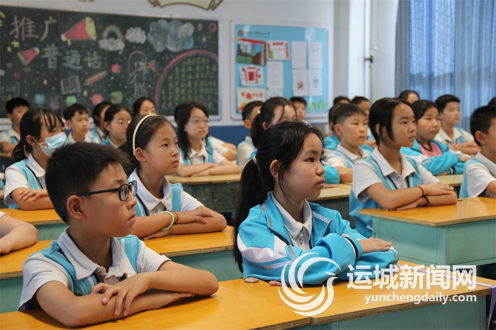 运城市逸夫小学学生紧盯实验目不转睛