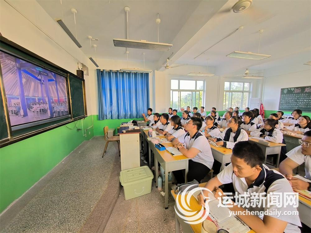 在英雄航天员景海鹏的母校——盐湖区解州中学,当日全体师生集体收看了“天宫课堂”,一睹海鹏学长的风采。