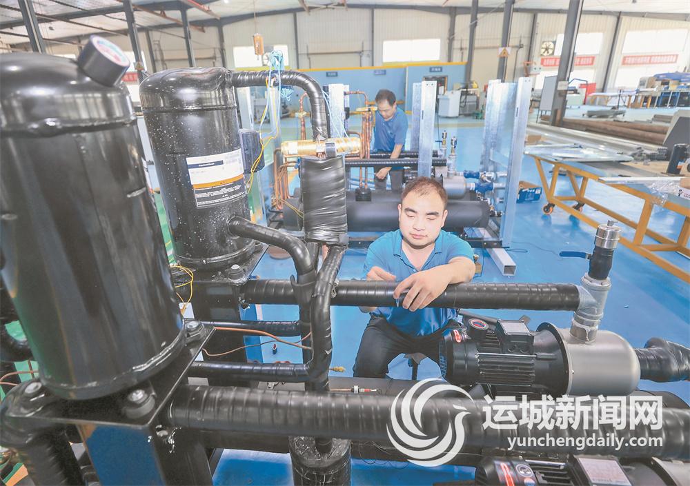 在山西新源谷能源科技有限公司生产车间内,工人在生产地源热泵产品。记者 常 奇 摄