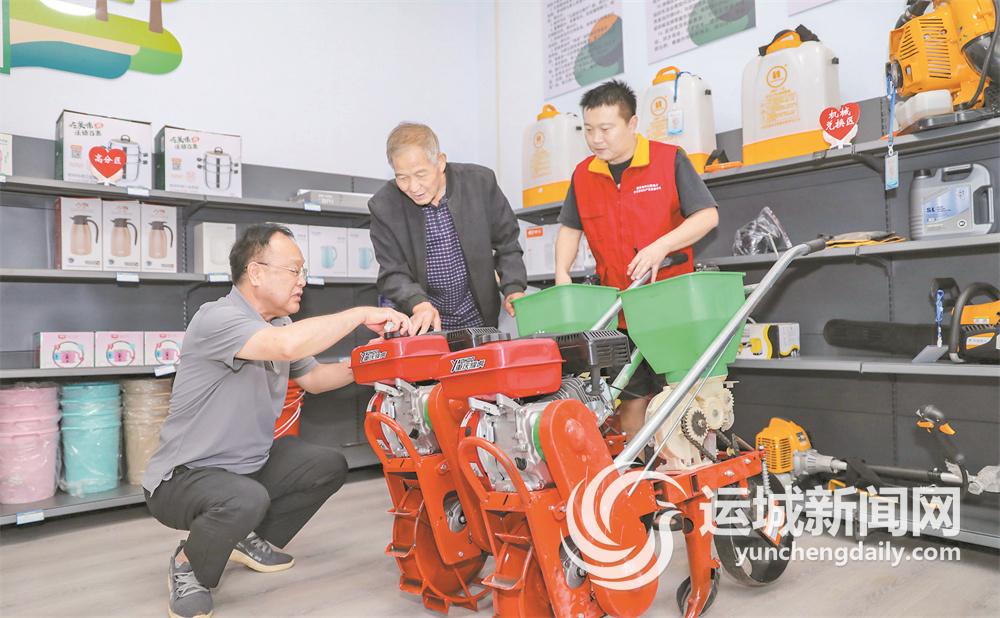 闻喜县阳隅镇笃行村的党群爱心超市内,村民在了解农机使用情况。 记者 金玉敏 摄