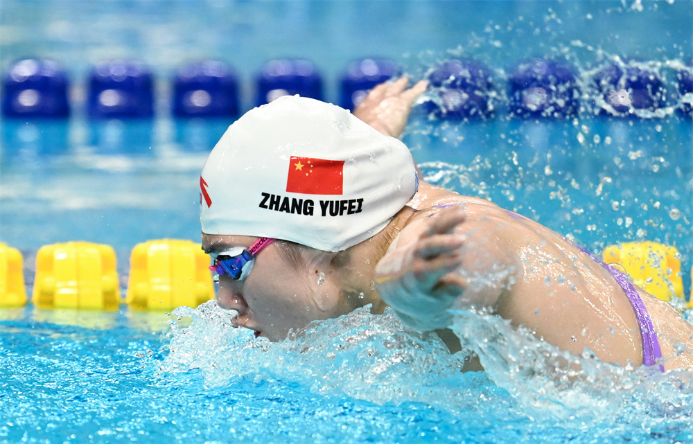 9月24日,中国选手张雨霏在女子200米蝶泳决赛中。当日,在浙江杭州奥体中心游泳馆进行的杭州亚运会游泳比赛女子200米蝶泳决赛中,中国选手张雨霏以2分05秒57的成绩获得冠军。