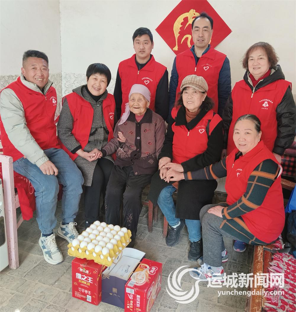 运城市敬老服务志愿者协会会长梁香草(左二)和大家看望百岁老人乔改子 资料图