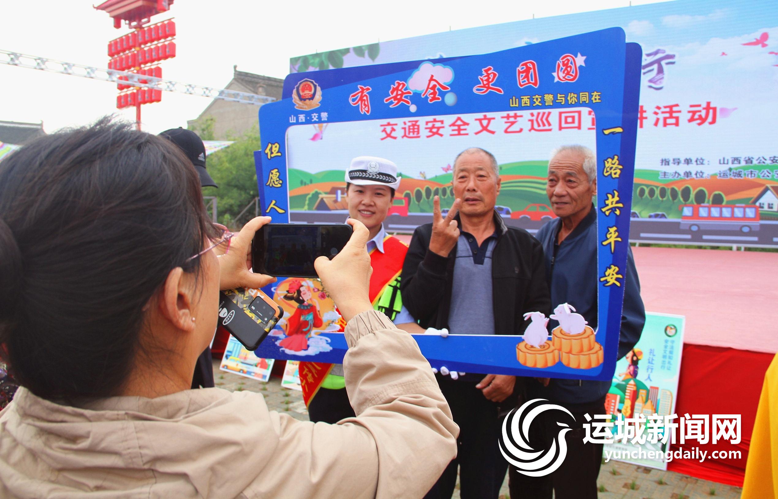 运城晚报讯(记者 樊朋展)金秋时节,后稷故里枣果飘香。近日,由山西省公安厅交管局主办、运城市公安局交警支队承办的“美丽乡村行”交通安全文艺巡回宣传活动,走进稷山县国家板枣公园,以“有安全 更团圆”为主题,采取击鼓传图说安全、微信拍照话安全及快板、舞蹈、有奖问答送“安全月饼”等群众喜闻乐见的形式,宣传交通安全知识。