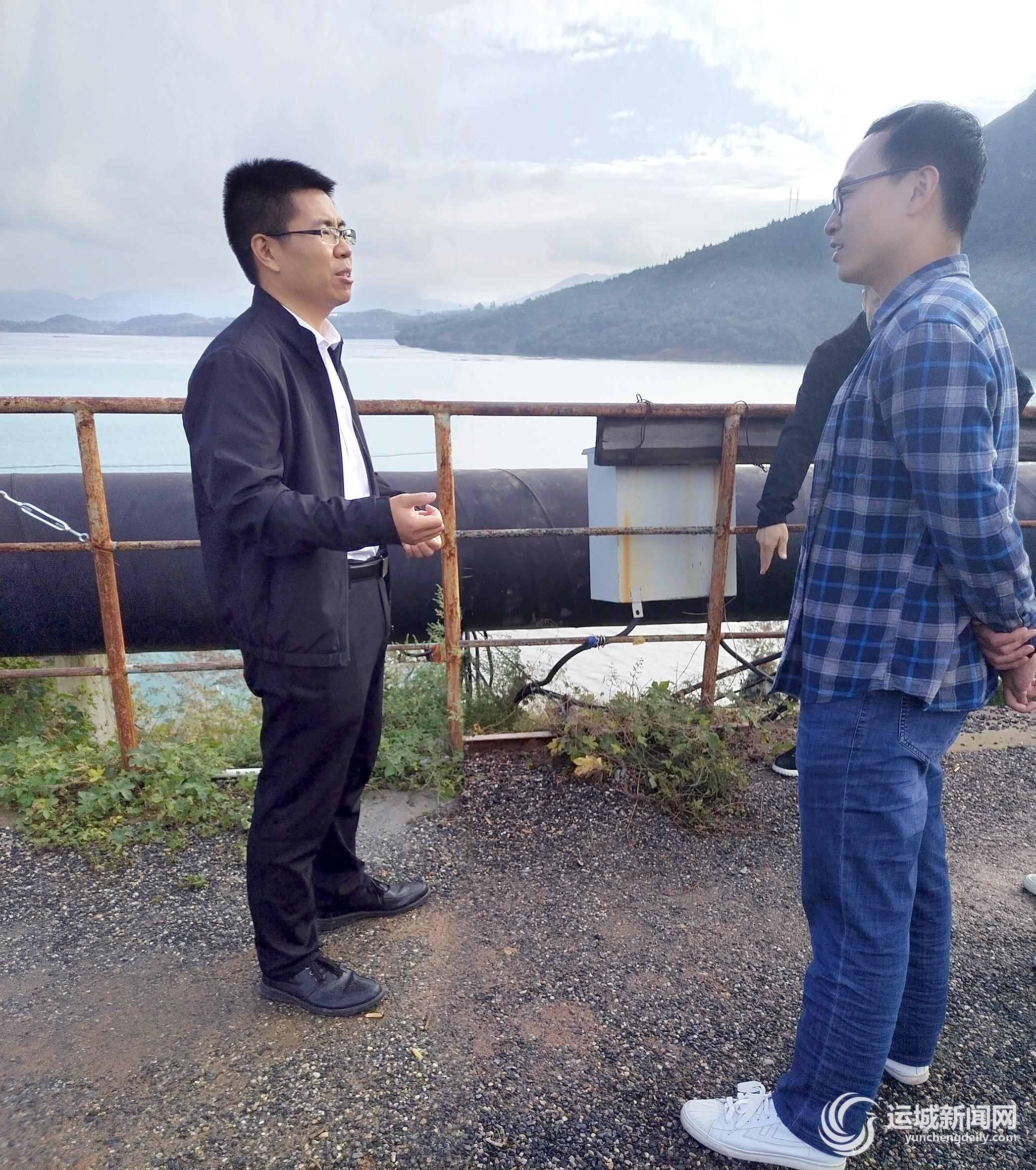 山西师范大学教授王永吉(左)发挥专业特长在垣曲十八河尾矿库就生态修复工程现场调研。
