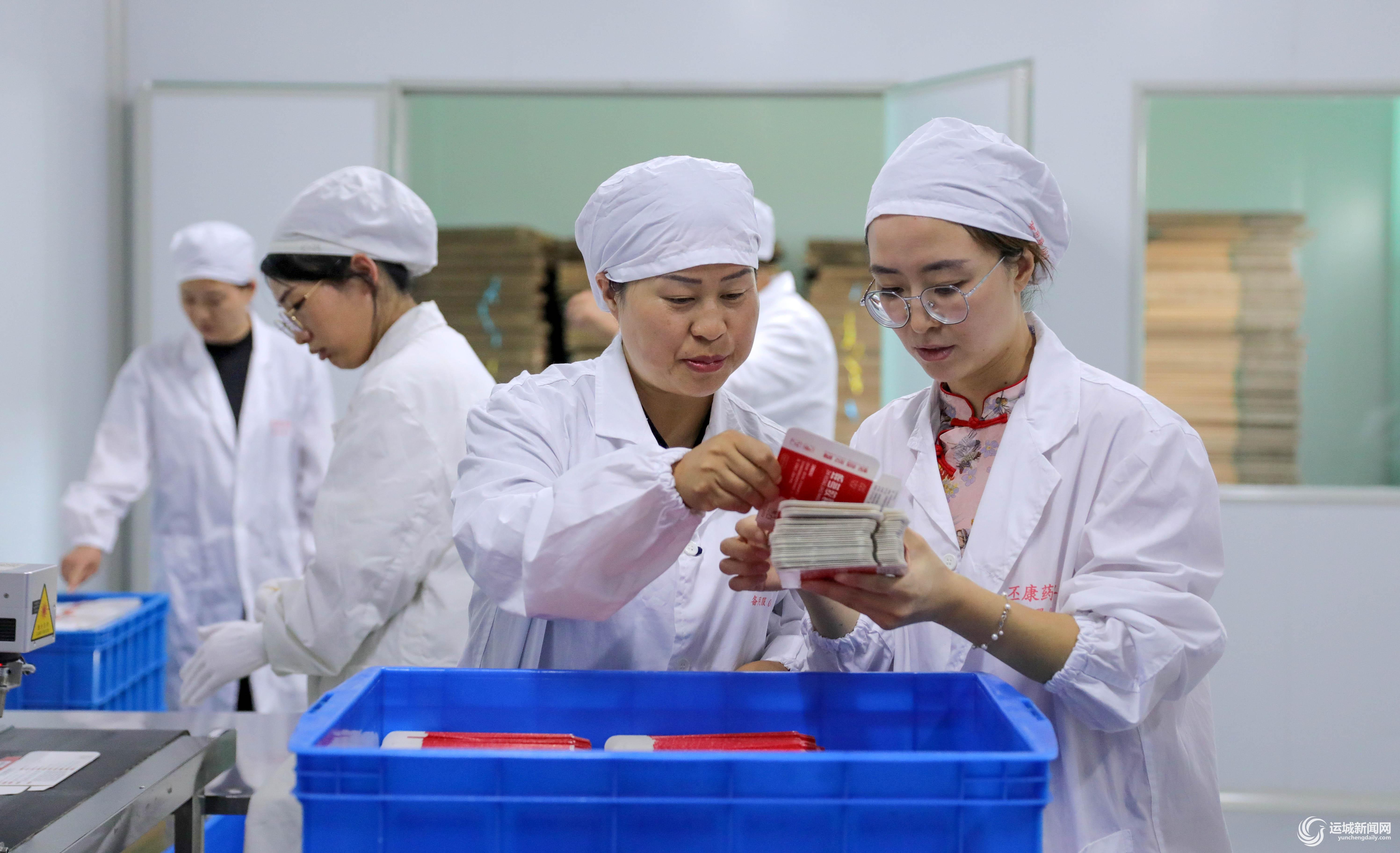 山西师范大学教授张美萍(右二)深入服务企业——山西丕康药业有限公司萃取车间现场指导。