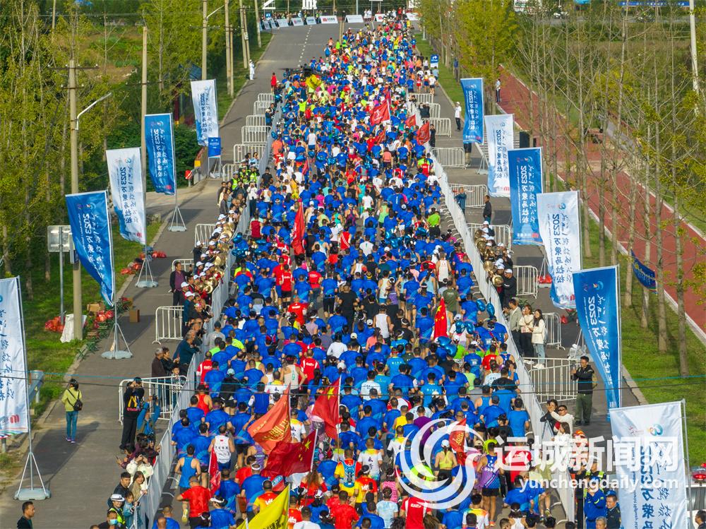 图为来自全国各地的参赛选手畅跑美丽万荣、共赴欢乐盛宴的场景