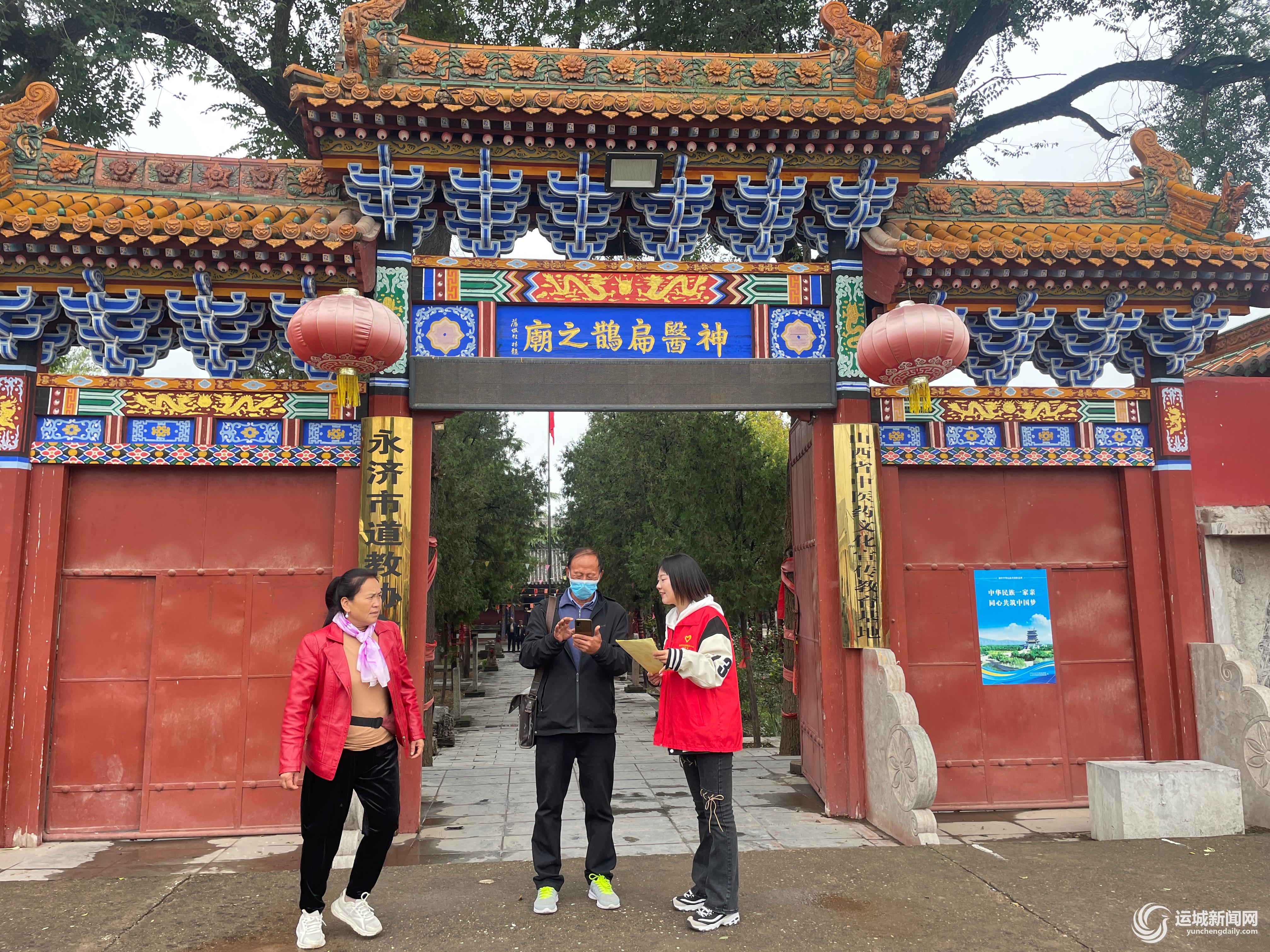 在万固寺景区,志愿者积极引导游客有序停放车辆,耐心热情地为游客提供问询引导服务,宣传文物保护等知识,给游客讲解多宝佛塔、无量殿的文物价值,倡导文明旅游,对不文明行为进行劝导,为营造文明、舒心的景区环境贡献力量。该寺号称“中条第一禅林”,北魏正光三年创建,唐大中八年重建,为河东名刹,2019年被国务院公布为全国重点文物保护单位。
