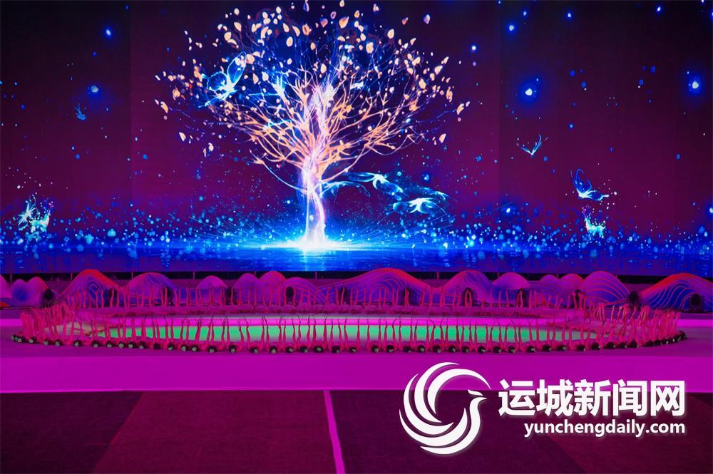 “你是大地的动脉,滋润着大地;你是人类的摇篮,哺育着人民;听,一条崭新的、风景旖旎的黄河正奔涌而来……”情景鼓乐《黄河颂》拉开开幕式文艺演出的序幕,30条金色绸带绘就黄河奔流的姿态,30名船工穿插其间奏响时代的强音。这鼓声是黄河汹涌奔腾的歌,是黄河豪迈粗犷的舞,是黄河刚劲奔放的魂,是“大美河东”的独特魅力,更是高质量发展的黄河脉动、运城力量。
