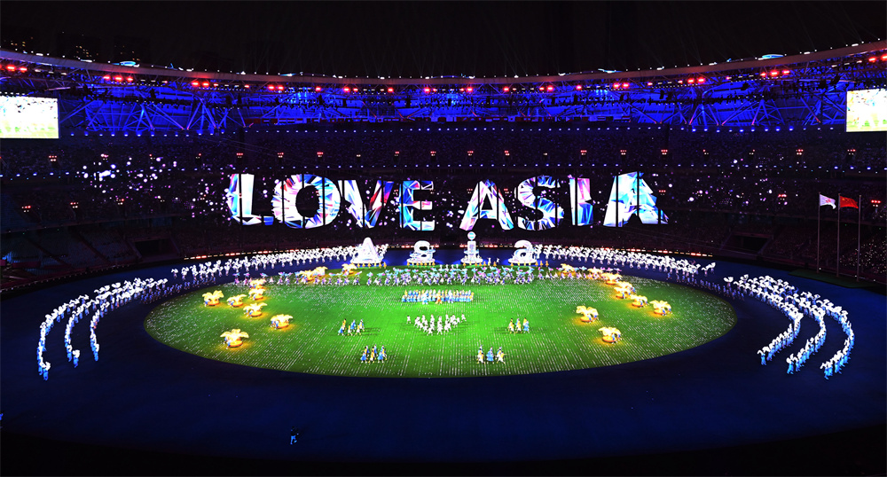在过去16天里,来自亚洲45个国家和地区的1万多名运动员在这里团结交流、收获友谊,奋勇拼搏、超越自我,累计15次打破世界纪录、37次打破亚洲纪录、170次打破亚运会纪录,共同创造了亚洲体育新的辉煌和荣光。中国秉持“绿色、智能、节俭、文明”办赛理念,以一流的场馆设施、出色的组织服务,赢得了亚奥理事会大家庭和国际社会的广泛好评。中国体育代表团获得201枚金牌、383枚奖牌,取得亚运会参赛历史最好成绩,第11次蝉联亚运会金牌榜榜首。