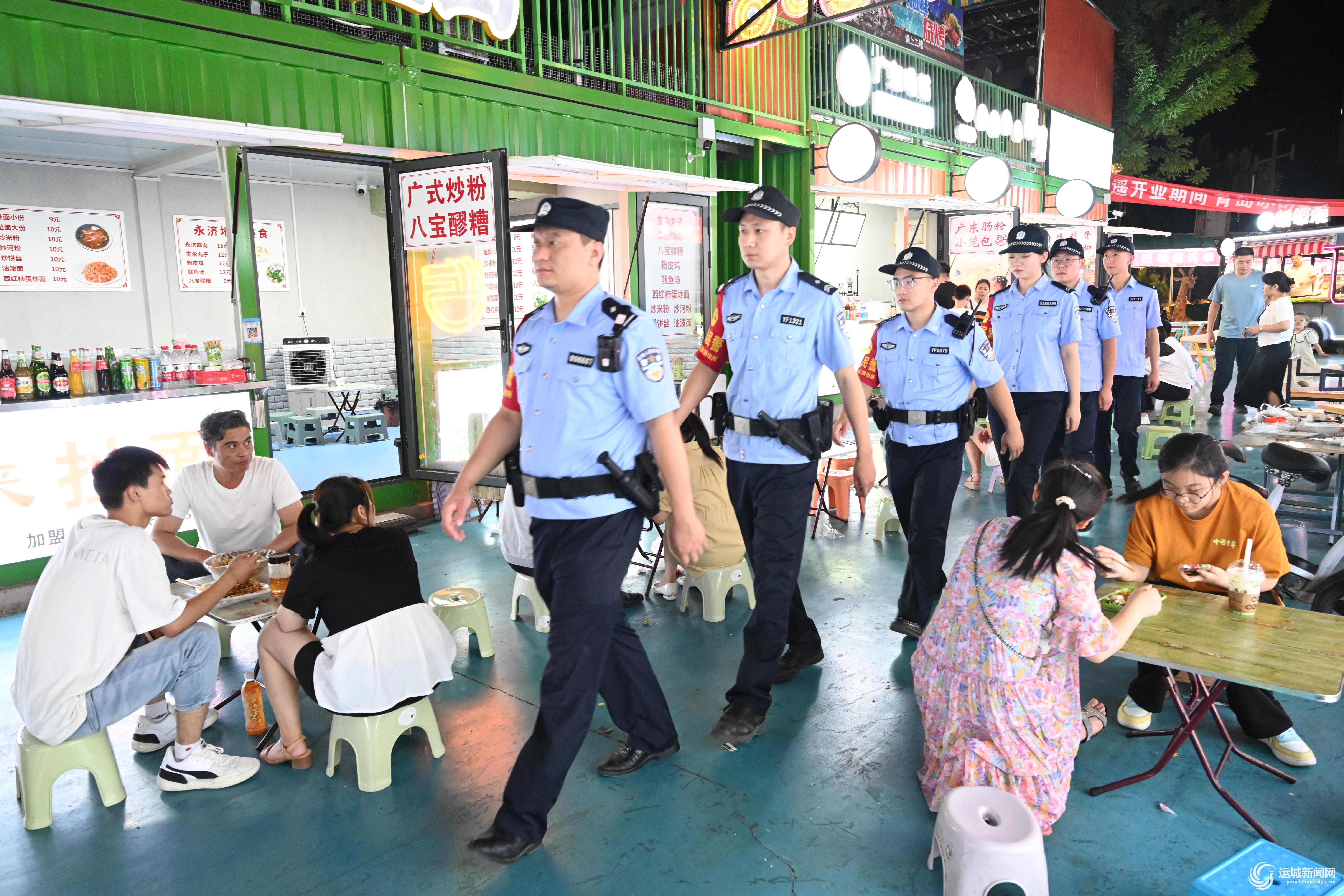 盐湖公安分局姚孟派出所民警在市区星河广场夜巡(资料图片)。