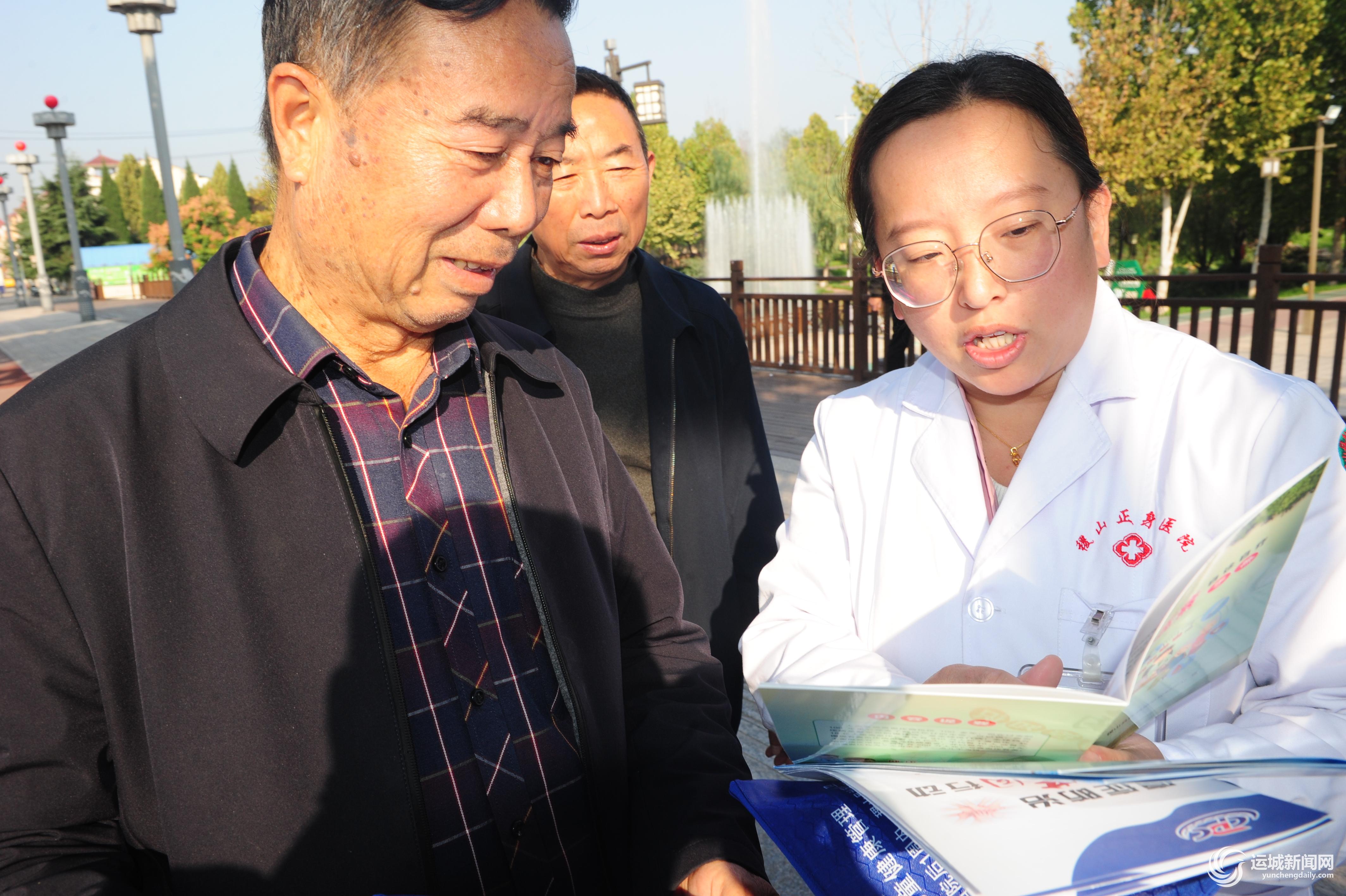 图为该县社区中心卫生院医务人员在民乐公园门口为过往群众宣传世界精神卫生日相关知识。 薛建磴 摄