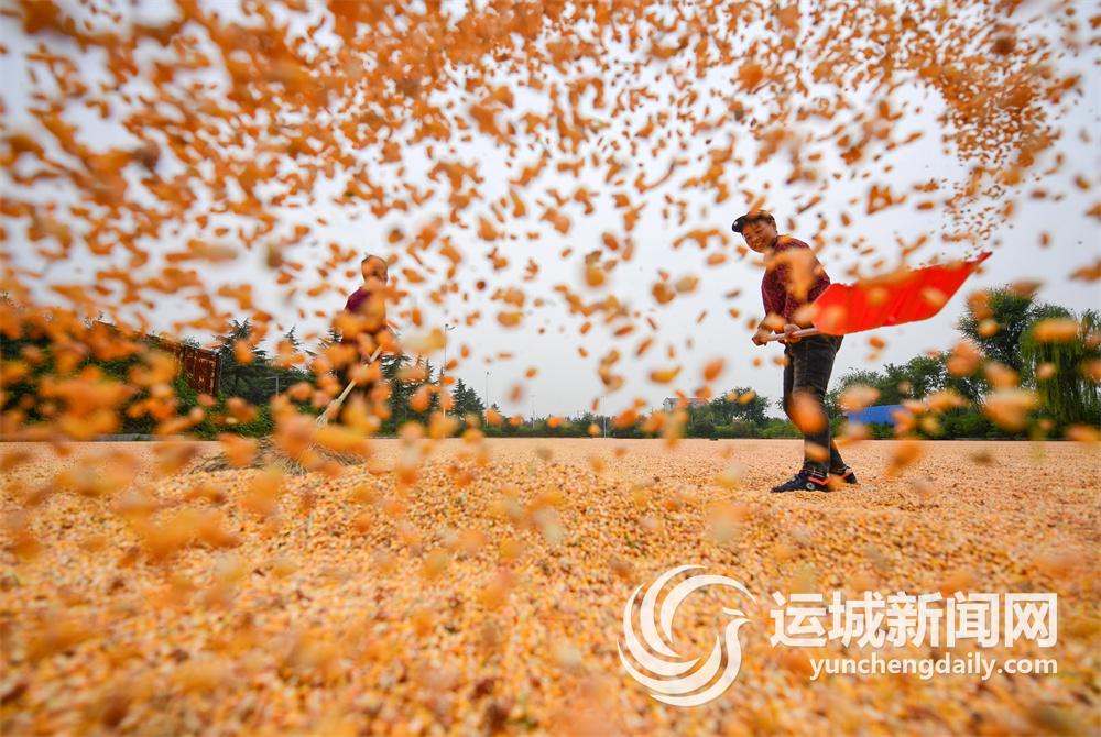 金秋时节,永济市60余万亩玉米喜获丰收,当地农民利用晴好天气抓紧晾晒收获的玉米,确保丰产丰收,颗粒归仓。在晾晒场上,新收获的玉米金灿灿,呈现出一幅大地丰收的喜人景象。