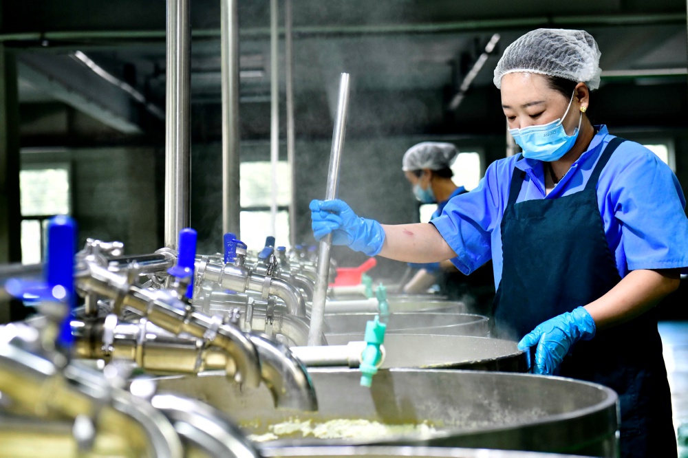 10月11日,山东省惠民县东方豆制品有限公司的工作人员在加工豆制品。