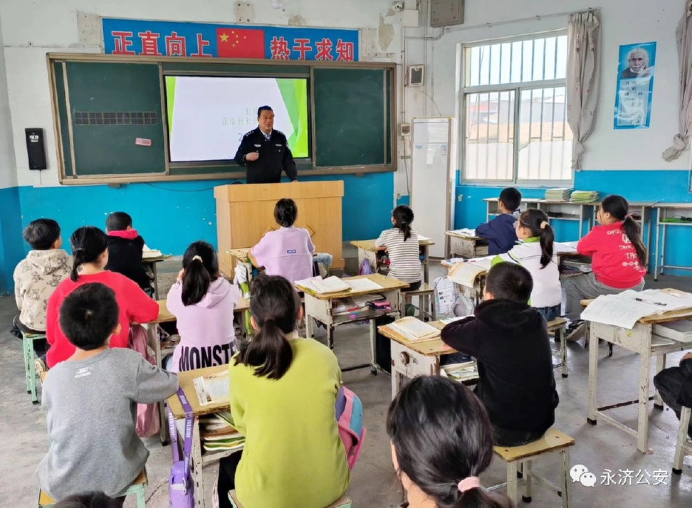 运城晚报讯(记者 樊朋展)为进一步做好未成年人法治宣传教育工作,切实增强学生群体的法律意识,连日来,永济市公安局各派出所民辅警走进全市中小学开展“增强学生法治意识,营造校园安全环境”普法宣传活动(右图)。