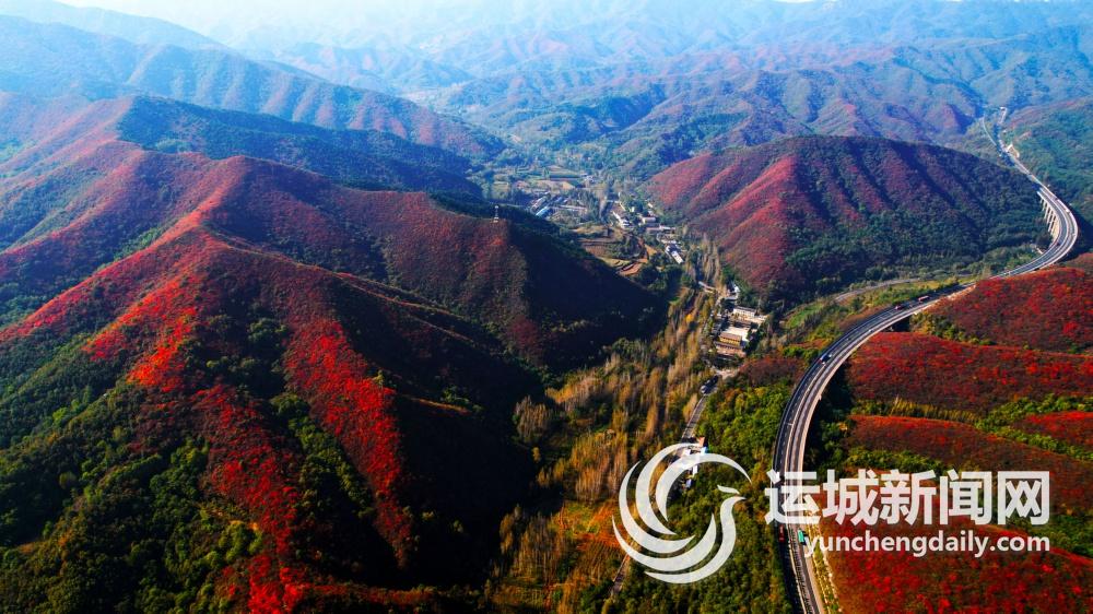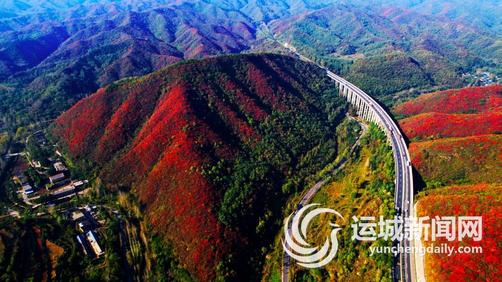 10月15日,垣曲县与闻喜县马家窑接壤的山坡上,成片的红叶层林尽染,闻垣高速穿行其中,构成一幅美丽的画卷。