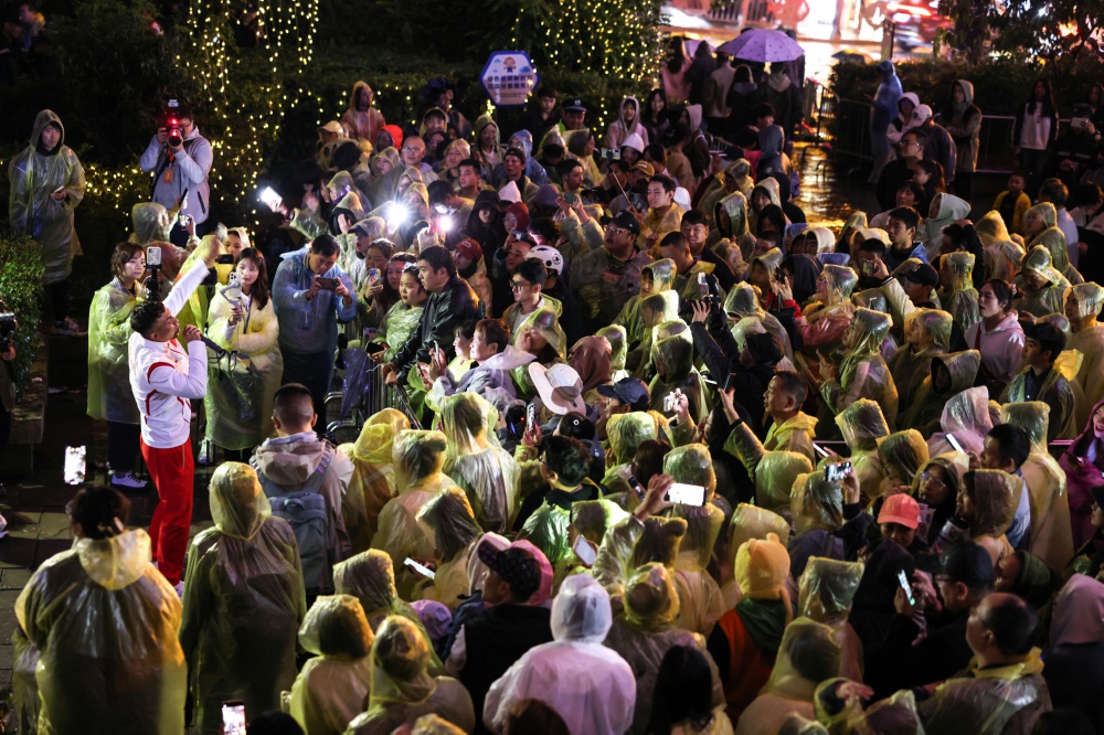 10月13日,刚刚在杭州亚运会龙舟项目上夺冠的王亮在贵阳市文昌阁路边音乐会现场演唱。