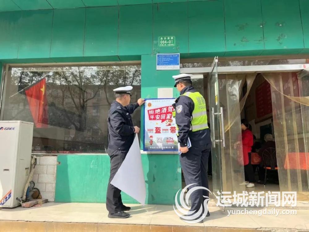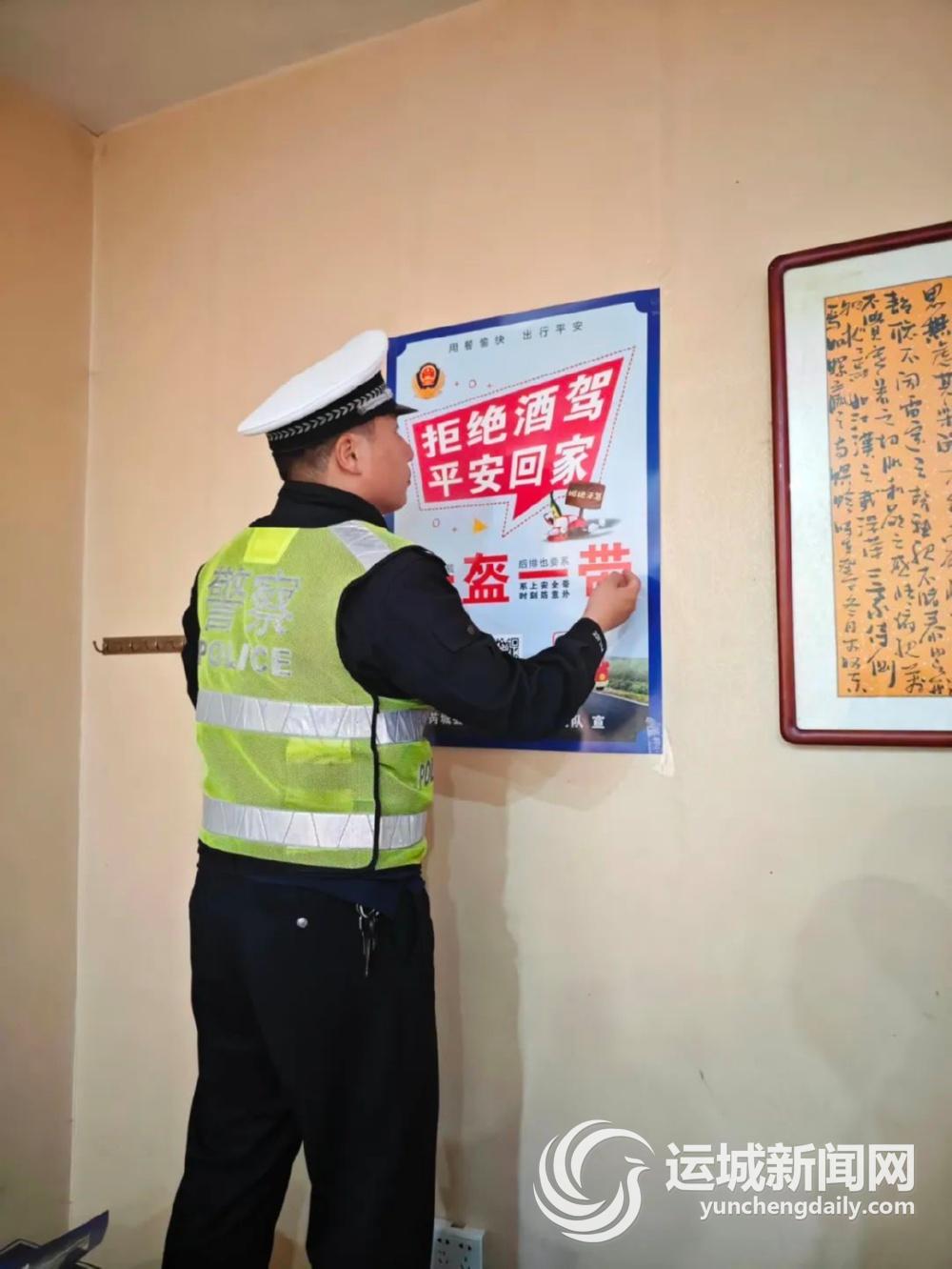 运城晚报讯(记者 樊朋展)近日,芮城交警大队围绕“酒驾醉驾”及“一盔一带”等主题,走进辖区饭店开展交通安全宣传活动,在餐桌上筑起第一道交通安全防护网。