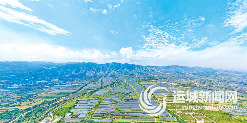 山河锦绣,“光”熠河东。金秋十月的运城处处风光正好,从高空俯瞰,在一块块湛蓝色光伏板的映衬下,位于芮城县的中条山南坡犹如一望无际的碧海,此起彼伏。