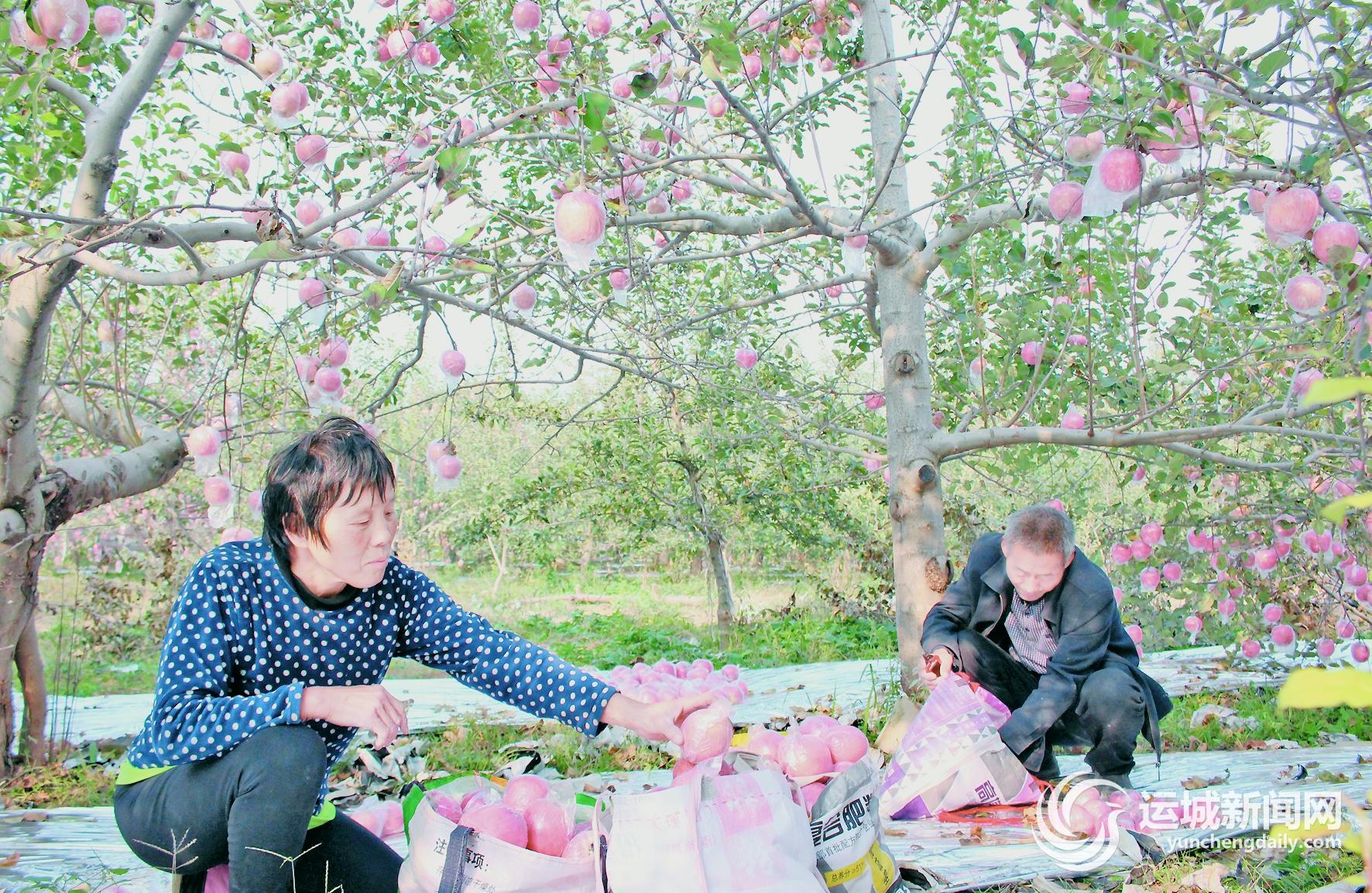 ▲10月17日,闻喜县阳隅镇瓮村一果园内,果农在收获苹果。