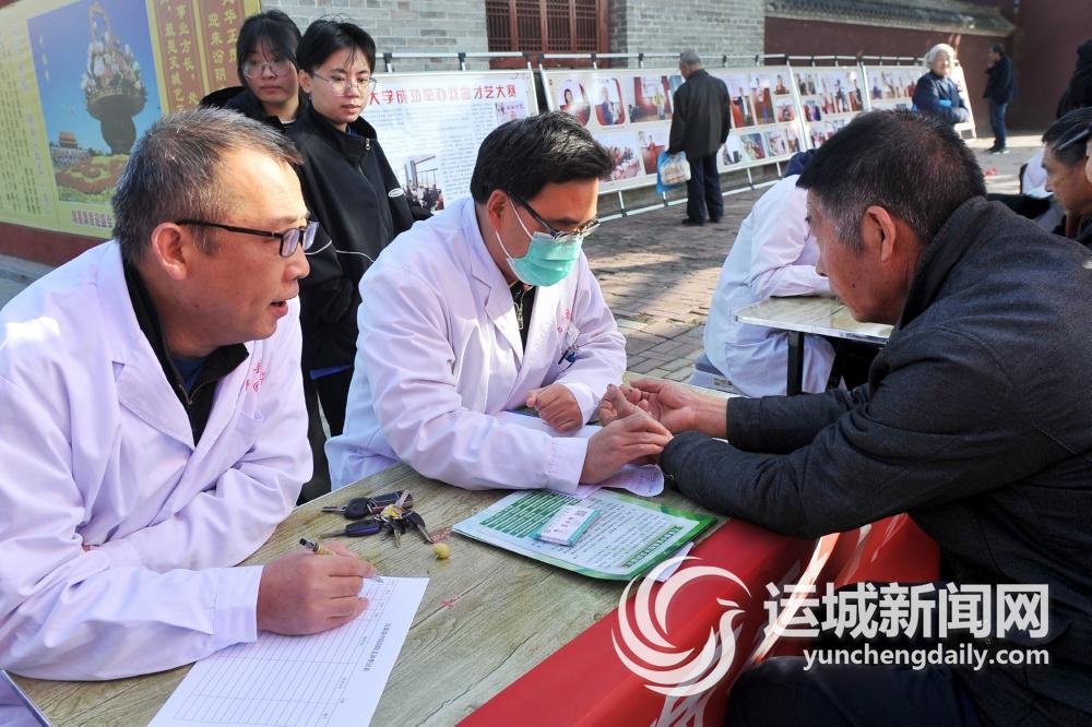 运城晚报讯(记者 朱超逸丁)10月20日,万荣县2023年“敬老月”健康义诊及宣传咨询服务活动,在该县后土广场举行。万荣县卫生健康和体育局组织老龄服务中心工作人员及县中医医院医务人员,普及医疗健康知识,把健康和关爱送到老人身边,190余位老人接受健康义诊。