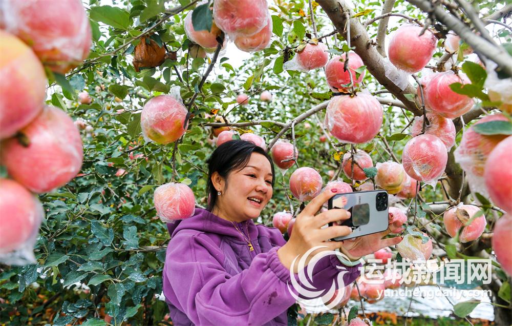 10月18日,一名来自四川的客商在夏县瑶峰镇苏村苹果园挑选苹果。