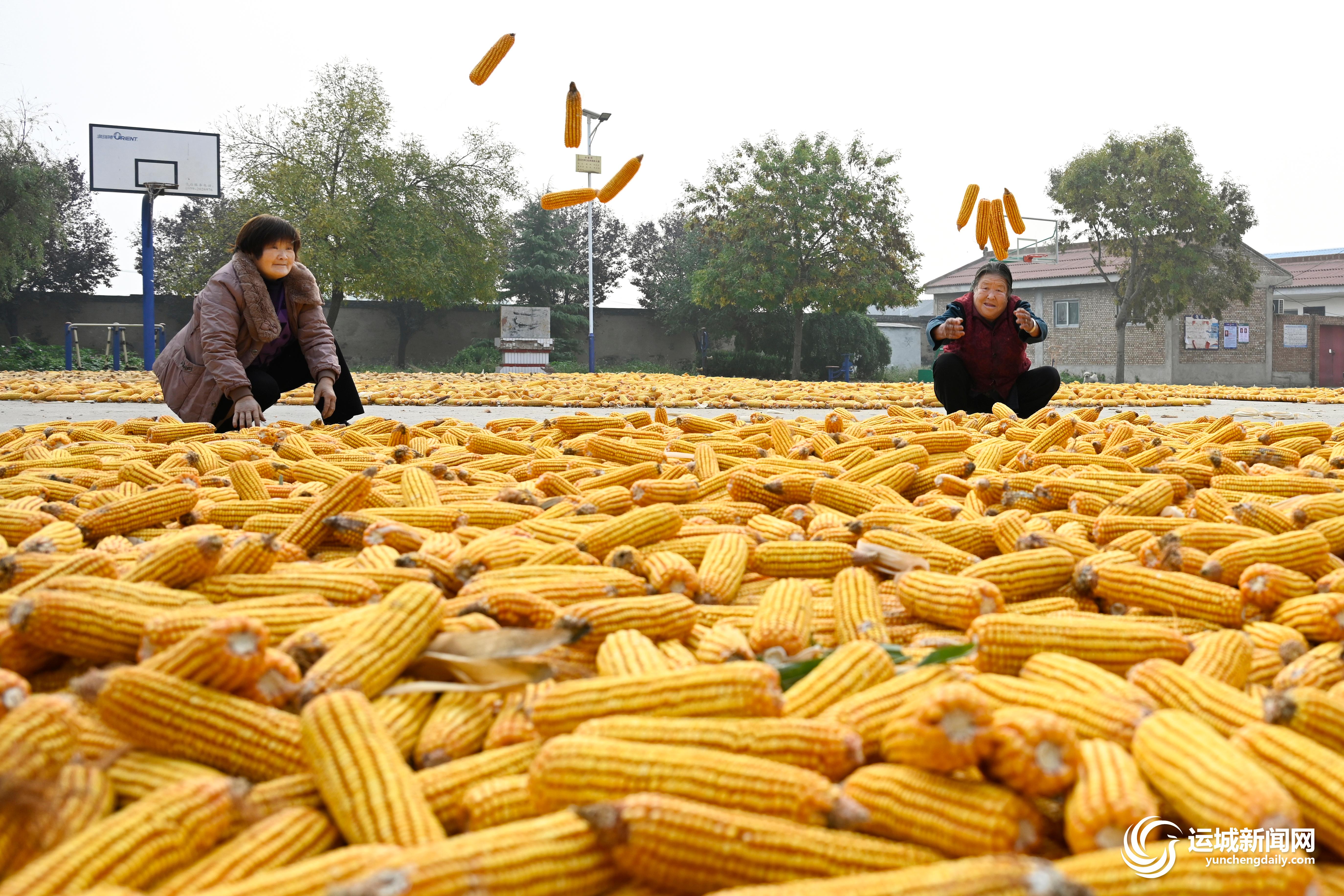 泽掌镇小聂村村民在晾晒刚收获的玉米。赵为民 摄