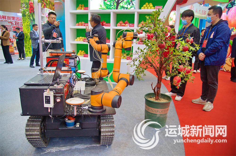 果业高质量发展展区集中展示了运城果业高质量发展的成果。数字经济赋能果业发展——晋南苹果交易市场平台“128+N”架构,提供全产业链数据服务,被果农亲切地称为“晋果在线”;“三新”果园坚持省力轻简集约技术路线,实现了“一年栽植,二年挂果,三年进入盛果期”目标;苹果采摘机器人已经可以完成高难度的采摘动作。该展区集中展示了十五大类近90个果树新品种的果品……引领果农注重果业提质增效,加快果树品种更新换代,并对果业新品种、新技术、新模式进行论证推广,为果业高质量发展插上科技腾飞的翅膀。