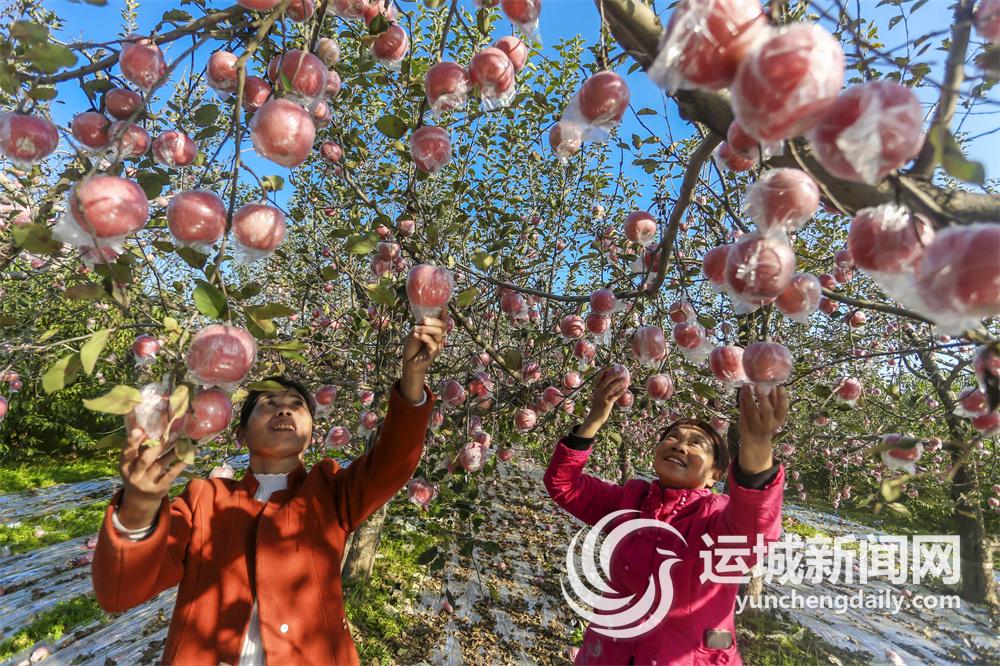 霜降时节,红艳艳的苹果挂满枝头,临猗县70万亩苹果进入成熟收获季,果农们抓紧时间采收、包装、销售,满足国内外市场的需求。特约摄影 姜桦