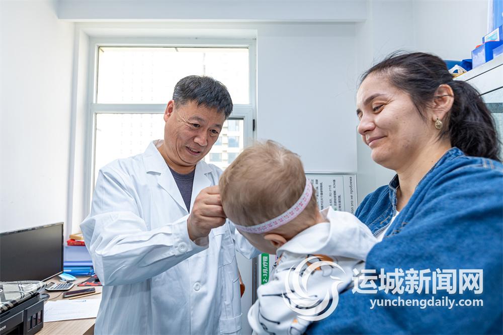 10月23日9时许,在运城市第三医院儿童康复科的诊室里,康复治疗师薛振锁熟练、详细地检查着一名外籍幼儿的四肢。伴随着他的一举一动,孩子发出响亮的哭声。孩子的母亲紧紧盯着孩子,在翻译的帮助下,带着关切、欣喜的语调向薛振锁“汇报”着最新的改变:“孩子已经可以从半跪到站起来了,你喂他吃东西的时候也知道张嘴了。”