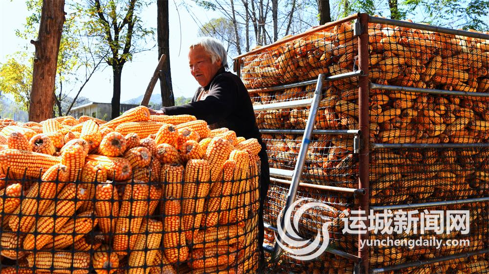 10月23日,垣曲县历山镇望仙村村民王英梅在晾晒玉米。