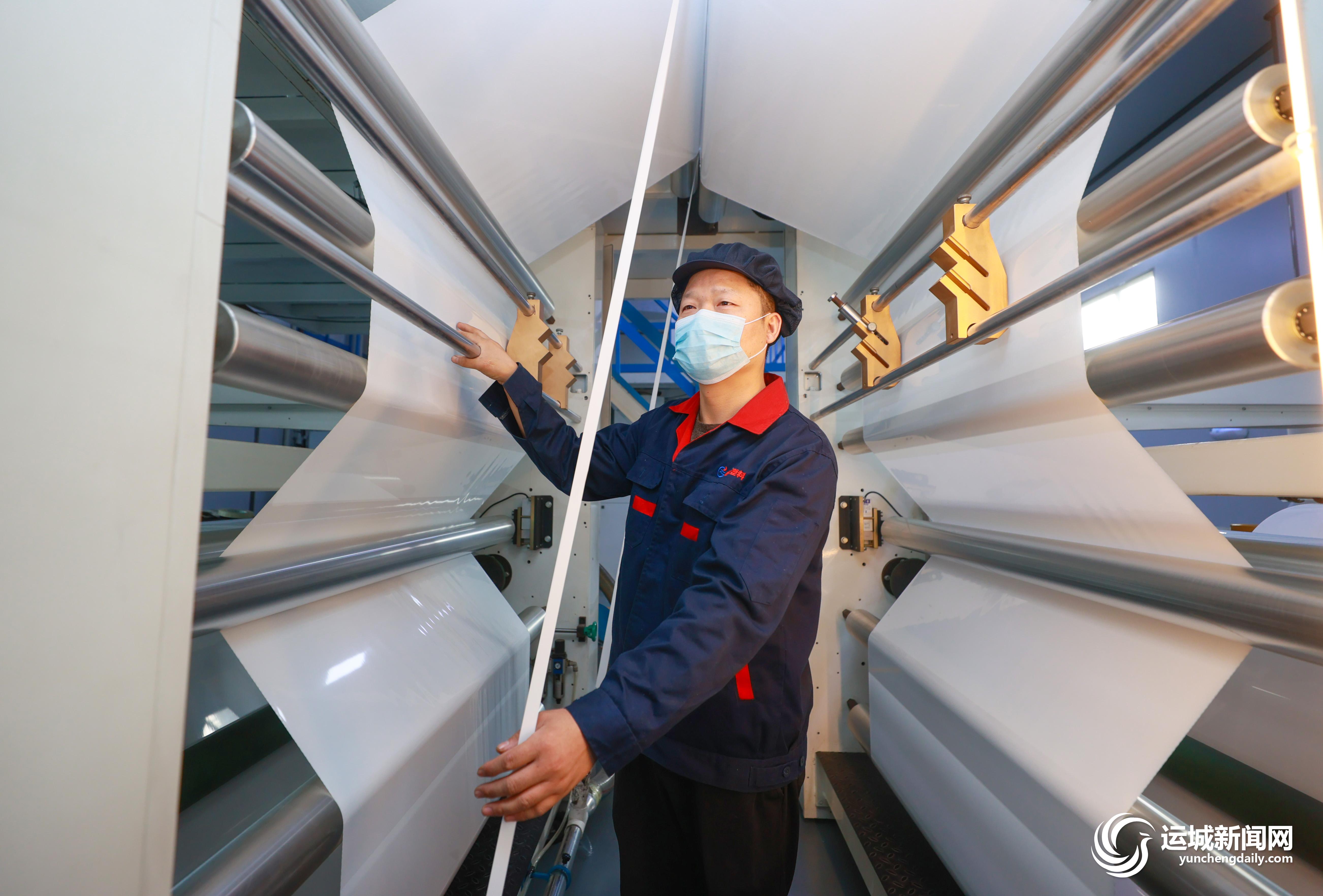 近日,位于运城经济技术开发区的山西金贵塑料制造股份有限公司车间内,工人在生产复合基材膜产品。