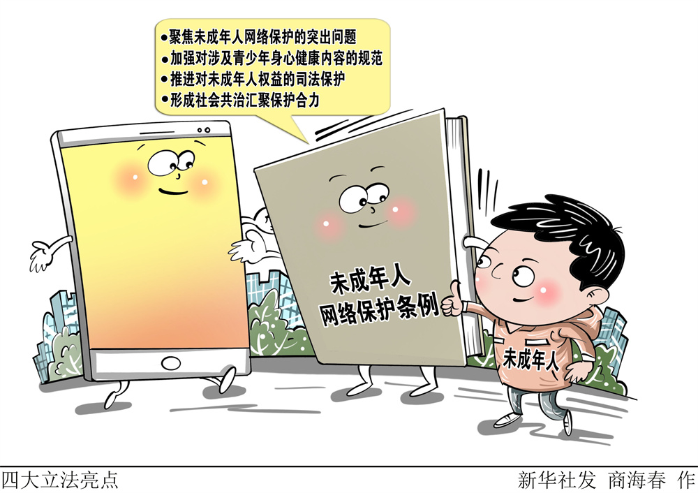 “未成年人在通过网络便利和丰富学习与生活的同时,也面临着违法和不良信息侵害、个人信息泄露、网络沉迷、网络欺凌等诸多风险。保障未成年人在网络空间的合法权益,成为网络空间治理的一项重点任务。”国家网信办副主任王崧表示,条例回应了社会各界对未成年人网络保护的关切,标志着我国未成年人网络保护法治建设进入新阶段。