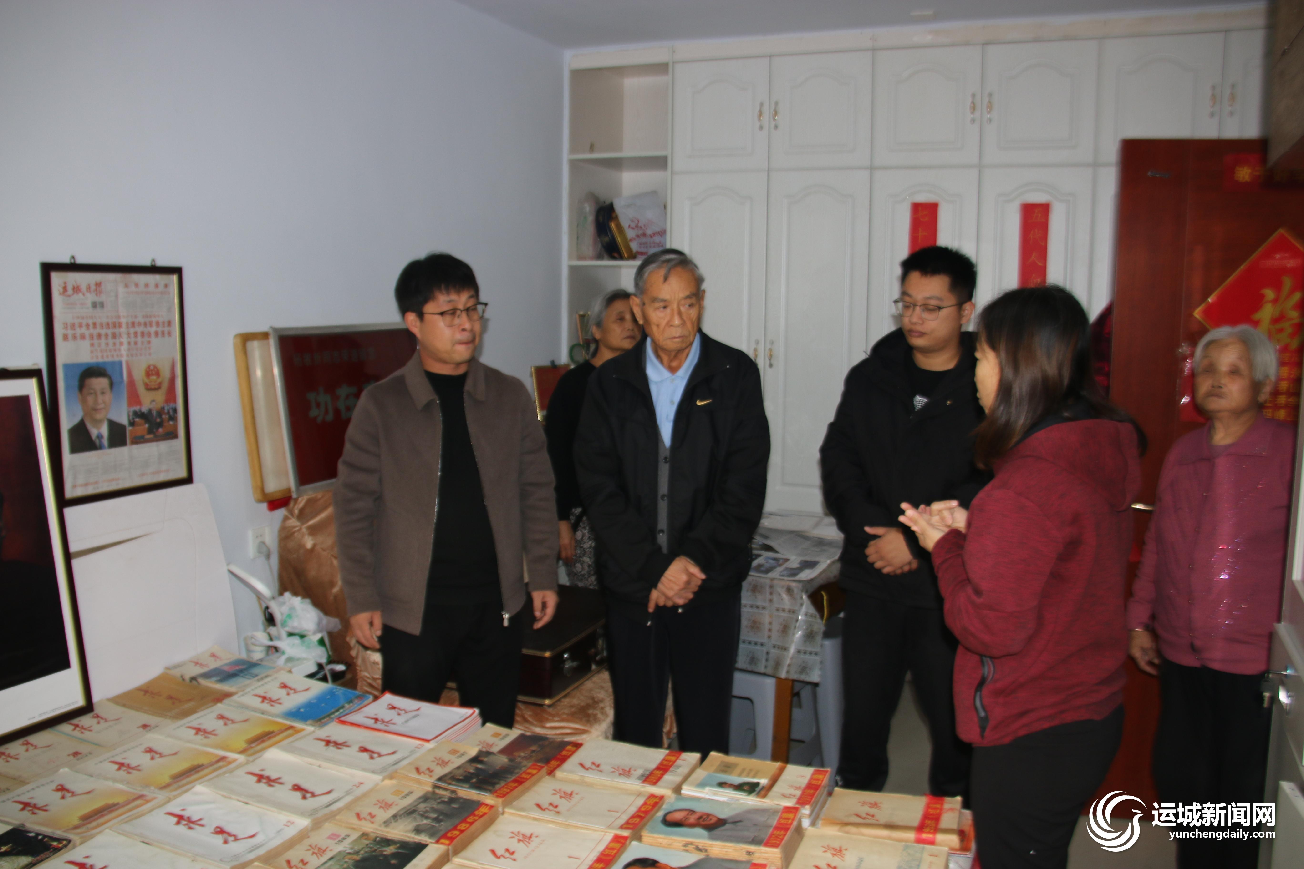 近日,山西地质建设工程有限公司驻芮城县不动产确权发证工作队队员,来到运城市区杨敏新家,参观他收藏的《求是》杂志,并一起交流学习体会。