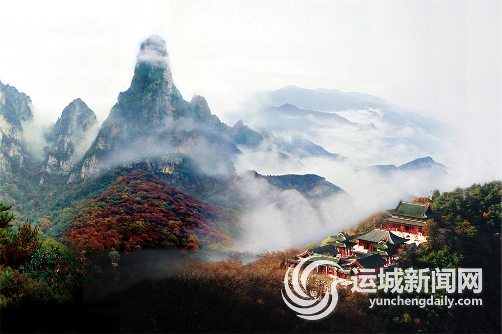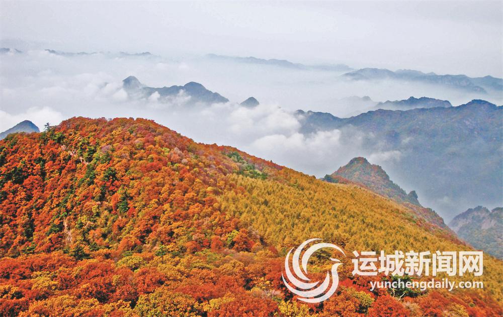 遥望中条,秋枫红醉,青松苍翠,红绿相映,层林尽染,叠翠流金,云海浮动,千里如锦,山河壮丽。